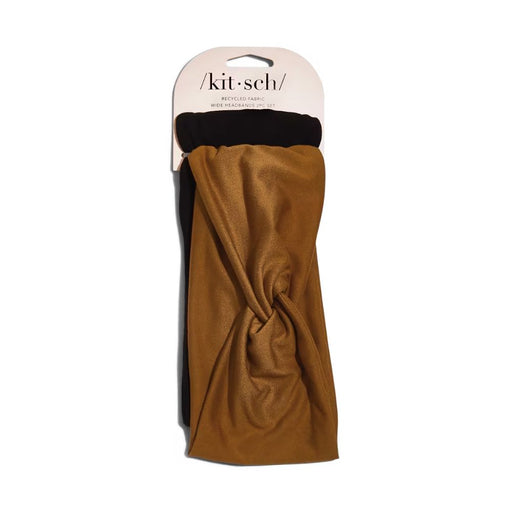 Kitsch Recycled Fabric Wide Headbands 2 Pack Black & Camel